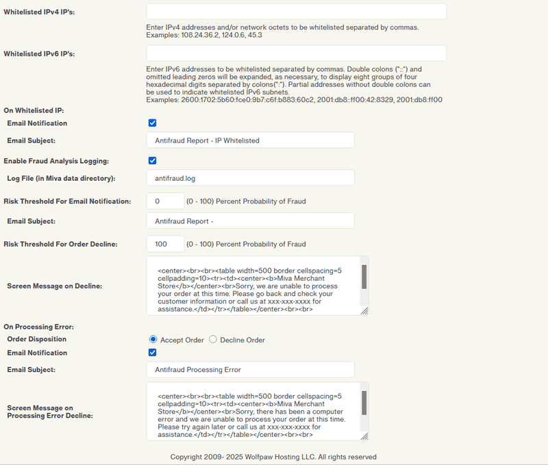 Wolfpaw's Fraud Screening and Detection Module - Miva Merchant - v10.4